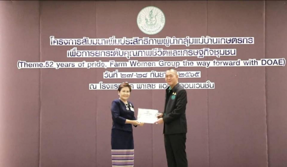 นายศักดิ์สิทธิ์ ศรีวิชัย เกษตรจังหวัดน่าน มอบหมายให้นางสาวพัชราภรณ์ บุญมา พร้อมด้วยนางพวงแก้ว พรมมิ ประธานกรรมการกลุ่มแม่บ้านเกษตรกรจังหวัดน่าน เข้าร่วมการสัมมนาเพิ่มประสิทธิภาพผู้นำกลุ่มแม่บ้านเกษตรกรเพื่อการยกระดับคุณภาพชีวิตและเศรษฐกิจชุมชนฯ