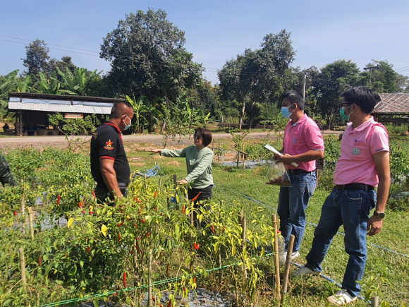 วันที่ 1 พฤศจิกายน 2565 นายศักดิ์สิทธิ์ ศรีวิชัย เกษตรจังหวัดน่าน มอบหมายให้นางอุมาพร ดีพรมกุล หัวหน้ากลุ่มอารักขาพืช และเจ้าหน้าที่กลุ่มอารักขาพืช สำนักงานเกษตรจังหวัดน่าน ลงพื้นที่ติดตามให้คำแนะนำในการดูแลรักษาและเก็บตัวอย่างขึ้นฉ่ายฝรั่งในโรงเรือน เพื่อนำไปตรวจวิเคราะห์หาสาเหตุของอาการใบไหม้ พร้อมทั้งติดตามให้คำแนะนำการควบคุมโรคและแมลงศัตรูพืชในแปลงพริกพันธุ์ซีอาน 113 และพันธุ์อัมพวาโกล์ ในระยะเก็บเกี่ยวผลผลิตและส่งผลผลิตไปยังวังสระปทุม โดยมีการสุ่มเก็บพริกไปวิเคราะห์สารตกค้าง พบว่าไม่พบสารตกค้างเกินค่ามาตรฐานและได้ปริมาณผลผลิตตามเป้าหมาย ทั้งนี้ ได้ให้คำแนะนำในการทำความสะอาดแปลงพริกที่พบอาการและให้กำจัดวัชพืชในแปลงอย่างสม่ำเสมอ รวมถึงเตรียมความพร้อมในการปรับปรุงฐานการเรียนรู้การผลิตน้ำหมักชีวภาพและสารชีวภัณฑ์ และฐานเรียนรู้การเพาะกล้าเพื่อขยายพันธุ์ผักให้แก่เกษตรกร ณ โครงการทหารพันธุ์ดี ฐานแสงเพ็ญ ตำบลฝายแก้ว อำเภอภูเพียง จังหวัดน่าน