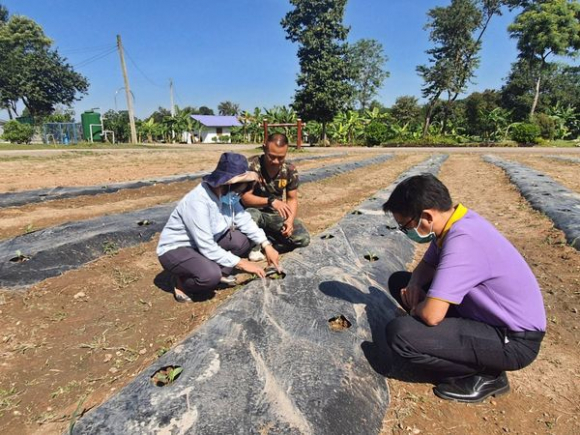 วันที่ 2 พฤศจิกายน 2565 นายศักดิ์สิทธิ์ ศรีวิชัย เกษตรจังหวัดน่าน มอบหมายให้นางอุมาพร ดีพรมกุล หัวหน้ากลุ่มอารักขาพืช และเจ้าหน้าที่กลุ่มอารักขาพืช สำนักงานเกษตรจังหวัดน่าน ลงพื้นที่ติดตามให้คำแนะนำในการดูแลรักษาคะน้าจากถาดเพาะลงแปลงปลูกได้ 8 วัน เพื่อวางแผนการผลิตเมล็ดพันธุ์คุณภาพต่อไป ณ โครงการทหารพันธุ์ดี ฐานแสงเพ็ญ ตำบลฝายแก้ว อำเภอภูเพียง จังหวัดน่าน