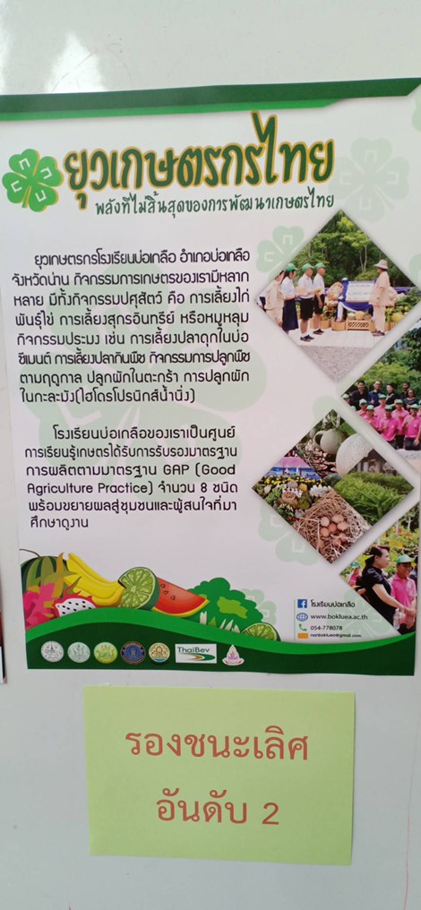 วันที่ 23 กรกฏาคม 2562 สำนักงานเกษตรจังหวัดน่าน โดยกลุ่มส่งเสริมและพัฒนาเกษตรกร พร้อมด้วยยุวเกษตรกรโรงเรียนบ่อเกลือ เข้าร่วมงานกิจกรรมงานชุมนุมยุวเกษตรกรและที่ปรึกษายุวเกษตรกรระดับประเทศ ณ โรงเรียนนายร้อยพระจุลจอมเกล้า จังหวัดนครนายก กิจกรรมในงานประกอบด้วยการแข่งขันเปลี่ยนยอดมะม่วง การกรอกวัสดุปลูกใส่ถุง การทายชื่อผลผลิตทางการเกษตร การเรียงเมล็ดพันธุ์พืชเป็นรูปภาพ การตอบปัญหาการเกษตรและการฝึกซ้อมการถือธงยุวฯ ในวันเฝ้ารับเสด็จ สมเด็จพระกนิษฐาธิราชเจ้า กรมสมเด็จพระเทพรัตนราชสุดาฯ สยามบรมราชกุมารี ในวันเปิดฯ ซึ่งสมาชิกยุวเกษตรกรจากน่านได้รับคัดเลือกให้ถือธง ผลการประกวด แข่งขันงานชุมนุมยุวเกษตรฯ เหรียญทองแรกในการแข่งขันคลิปวีดีโอแนะนำกลุ่มยุวเกษตรกร และเหรียญทองตอบปัญหาการเกษตร เหรียญทองเรียงเมล็ดพันธุ์พืชเป็นรูปภาพ รองชนะเลิศอันดับ 2 ประกวดแผ่น ประชาสัมพันธ์งานยุวเกษตรกร