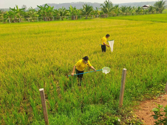 วันที่ 10 เมษายน 2566 นายศักดิ์สิทธิ์ ศรีวิชัย เกษตรจังหวัดน่าน มอบหมายให้นายสุนทร วันหมื่น นักวิชาการส่งเสริมการเกษตรชำนาญการ และเจ้าหน้าที่กลุ่มอารักขาพืช สำนักงานเกษตรจังหวัดน่าน ร่วมกับเจ้าหน้าที่สำนักงานเกษตรอำเภอเวียงสา ลงพื้นที่สำรวจติดตามสถานการณ์แมลงศัตรูพืชของข้าวในฤดูนาปรัง พบว่ามีการเข้าทำลายของเพลี้ยกระโดดหลังขาว ทำให้ต้นข้าวแสดงอาการใบสีเหลือง ทั้งนี้ได้ให้คำแนะนำในการป้องกันกำจัดโดยใช้สารเคมีกำจัดศัตรูพืชแก่เกษตรกร หมู่ที่ 3 ตำบลนาเหลือง อำเภอเวียงสา จังหวัดน่าน