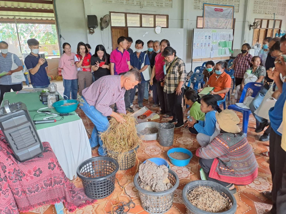 วันที่ 15 พฤษภาคม 2566 นายศักดิ์สิทธิ์ ศรีวิชัย เกษตรจังหวัดน่าน มอบหมายให้นายอาณัติ ต๊ะวิไชย นายสุนทร วันหมื่น นักวิชาการส่งเสริมการเกษตรชำนาญการ และนางสาวบุณยวีร์ ชาวแพะ นักวิชาการส่งเสริมการเกษตรปฏิบัติการ กลุ่มอารักขาพืช สำนักงานเกษตรจังหวัดน่าน พร้อมด้วยเจ้าหน้าที่สำนักงานเกษตรอำเภอเวียงสา จัดอบรมถ่ายทอดความรู้โครงการบูรณาการสิ่งแวดล้อมและบรรเทาสาธารณะภัย กิจกรรมหลักบูรณาการแก้ไขปัญหาหมอกควันไฟป่า ภายใต้โครงการตามแผนปฏิบัติราชการประจำปีของกลุ่มจังหวัดภาคเหนือตอนบน 2 ประจำปีงบประมาณ 2566 โดยมีกิจกรรมการทำปุ๋ยหมักแบบไม่กลับกอง และการเพาะเห็ดฟางจากเศษวัสดุเหลือใช้ทางการเกษตร เกษตรกรเข้าร่วมจำนวน 40 ราย ณ หอประชุมหมู่บ้านไหล่น่าน หมู่ 2 ตำบลไหล่น่าน อำเภอเวียงสา จังหวัดน่าน