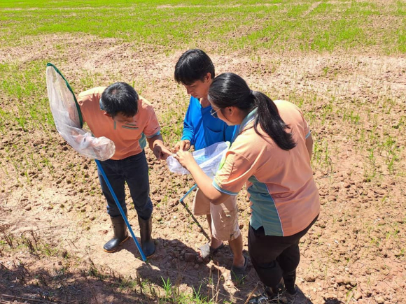 นายศักดิ์สิทธิ์ ศรีวิชัย เกษตรจังหวัดน่าน มอบหมายให้นายอาณัติ ต๊ะวิไชย นายสุนทร วันหมื่น นักวิชาการส่งเสริมการเกษตรชำนาญการ และนางสาวบุณยวีร์ ชาวแพะ นักวิชาการส่งเสริมการเกษตรปฏิบัติการ กลุ่มอารักขาพืช สำนักงานเกษตรจังหวัดน่าน ลงพื้นที่ติดตามโครงการส่งเสริมการเกษตรแบบแปลงใหญ่ กิจกรรมเบิกแทนกรมการข้าว ของเกษตรกรกลุ่มแปลงใหญ่ข้าวตำบลขึ่ง ซึ่งได้สำรวจติดตามสถานการณ์แมลงศัตรูพืชของข้าว ในระยะกล้า ทั้งนี้ ยังไม่พบการระบาดของแมลงศัตรูพืชในระดับที่ก่อให้เกิดความเสียหายต่อข้าวในระยะนี้ ณ ตำบลขึ่ง อำเภอเวียงสา จังหวัดน่าน