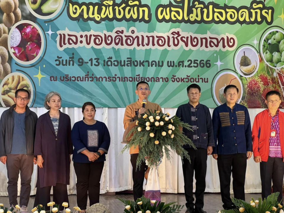 นายวิบูรณ์ แววบัณฑิต ผู้ว่าราชการจังหวัดน่าน เป็นประธานเปิดงานพืชผัก ผลไม้ปลอดภัย และของดีอำเภอเชียงกลาง มีนายศักดิ์สิทธิ์ ศรีวิชัย เกษตรจังหวัดน่าน เข้าร่วมงานดังกล่าว เพื่อประชาสัมพันธ์แหล่งผลิตพืชผักผลไม้ปลอดภัยและไม้ผลเศรษฐกิจ รวมถึง ของดีอำเภอเชียงกลาง ให้เป็นที่รู้จัก แก่สาธารณชน และยังเป็นการสร้างรายได้ให้แก่เกษตรกรโดยการเชื่อมโยงด้านการตลาดระหว่างเกษตรกรกับผู้ประกอบการ ตลอดจน เพื่อการส่งเสริมการท่องเที่ยวเชิงเกษตร พร้อมนี้ผู้ว่าราชการจังหวัดน่านได้มอบรางวัลให้กับผู้ชนะการประกวดลำไยสดช่อ พันธุ์อีดอ เพื่อเป็นขวัญและกำลังใจให้แก่เกษตรผู้ปลูกลำไยในพื้นที่อำเภอเชียงกลาง โดยมีการจัดงานระหว่างวันที่ 9-13 สิงหาคม 2566 ณ ที่ว่าการอำเภอเชียงกลาง จังหวัดน่าน