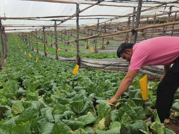 นายศักดิ์สิทธิ์ ศรีวิชัย เกษตรจังหวัดน่าน มอบหมายให้นายสุนทร วันหมื่น นักวิชาการส่งเสริมการเกษตรชำนาญการ และนางสาวบุณยวีร์ ชาวแพะ นักวิชาการส่งเสริมการเกษตรปฏิบัติการ กลุ่มอารักขาพืช สำนักงานเกษตรจังหวัดน่าน ลงพื้นที่ติดตามการดำเนินโครงการส่งเสริมการใช้สารชีวภัณฑ์และแมลงศัตรูธรรมชาติทดแทนสารเคมีทางการเกษตร ประจำปีงบประมาณ พ.ศ. 2566 โดยเกษตรกรได้นำวิธีการจัดการศัตรูพืชแบบผสมผสานไปใช้ในพื้นที่ ณ แปลงใหญ่ผักเมืองหนาวบ้านปางแก ตำบลทุ่งช้าง อำเภอทุ่งช้าง จังหวัดน่าน