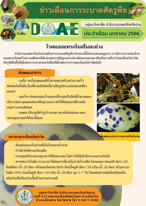 ข่าวเตือนการระบาดศัตรูพืช โรคแอนแทรกโนสในมะม่วง