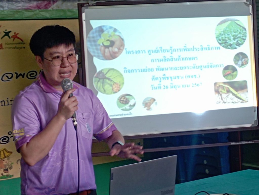 วันที่ 26 มิถุนายน 2567 นายฤษณายุทธ ณ น่าน เกษตรอำเภอปัว พร้อมด้วย เจ้าหน้าที่สำนักงานเกษตรอำเภอปัว ดำเนินการจัดกระบวนการเรียนรู้ด้านอารักขาพืชแก่สมาชิก ศจช. โครงการศูนย์เรียนรู้การเพิ่มประสิทธิภาพการผลิตสินค้าเกษตร ประจำปีงบประมาณ พ.ศ.2567 กิจกรรมศูนย์เรียนรู้การเพิ่มประสิทธิภาพการผลิตสินค้าเกษตร กิจกรรมย่อย การพัฒนาศูนย์เครือข่าย เป้าหมายเกษตรกร 10 ราย ณ ศูนย์เรียนรู้การเพิ่มประสิทธิภาพการผลิตสินค้าเกษตร (ศพก.) หมู่ 1 ตำบลสถาน อำเภอปัว จังหวัดน่าน