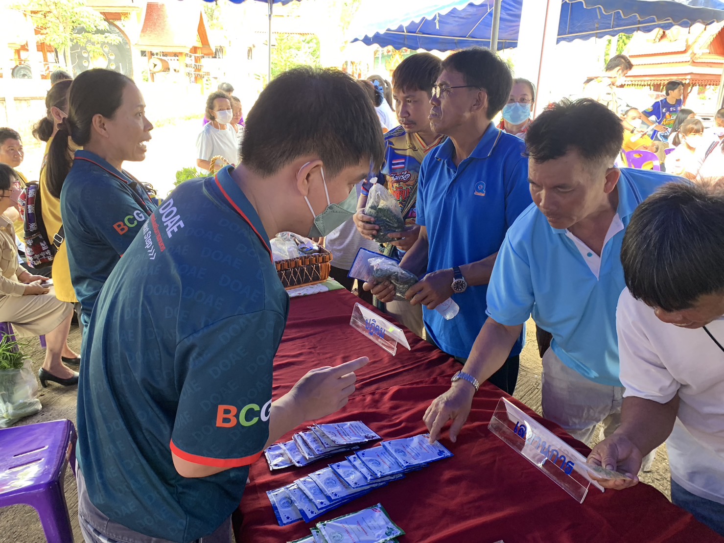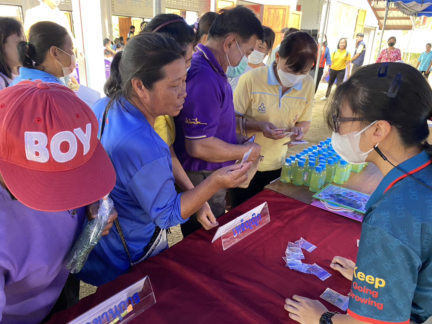 นางภัทรนันท์ พิยะ นักวิชาการส่งเสริมการเกษตรชำนาญการ รักษาราชการแทนเกษตรอำเภอท่าวังผา พร้อมด้วยเจ้าหน้าที่สำนักงานเกษตรอำเภอท่าวังผา ร่วมกิจกรรมโครงการบำบัดทุกข์บำรุงสุข สร้างรอยยิ้มให้ประชาชนบ้านทุ่งฆ้อง หมู่ที่ 5 ตำบลยม โดยทางสำนักงานเกษตรอำเภอท่าวังผาได้ประชาสัมพันธ์การขึ้นทะเบียนและปรับปรุงทะเบียนเกษตรกรผู้ปลูกข้าวนาปี 2566/67 และการป้องกันกำจัดศัตรูพืช พร้อมทั้งสนับสนุนเชื้อราไตรโครเดอร์มา สารเร่ง พด. และเมล็ดพันธุ์ผักแก่เกษตรกรที่เข้าร่วมงาน
