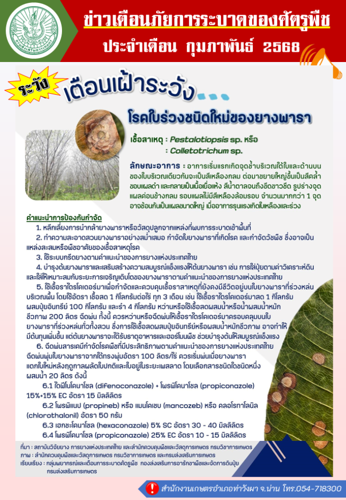 ยางพารา : โรคใบร่วงชนิดใหม่