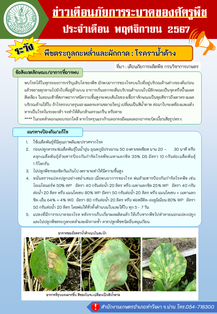พืชตระกูลกะหล่ำและผักกาด : โรคราน้ำค้าง