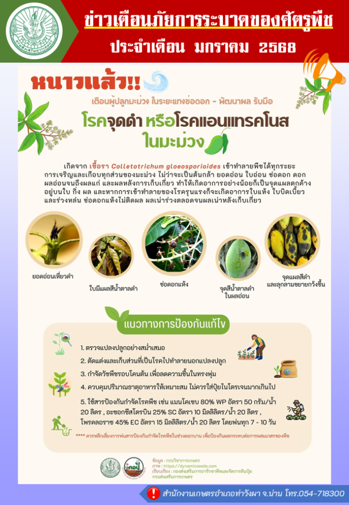 มะม่วง : โรคจุดดำ หรือ โรคแอนแทรคโนส