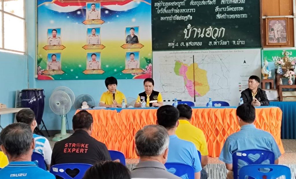 นายสันติ มณีอ่อน เกษตรอำเภอท่าวังผา มอบหมายให้ นางเฉลิมพร ลำน้อย นักวิชาการส่งเสริมการเกษตรชำนาญการพิเศษ ร่วมประชุมเพื่อเตรียมความพร้อมการประเมินโครงการคัดเลือกหมู่บ้านเข้มแข็ง ตามแนวทาง “แผ่นดินธรรม แผ่นดินทอง” (หมู่บ้านอยู่เย็น) ประจำปีงบประมาณ พ.ศ. 2568 พร้อมทั้งประชาสัมพันธ์การขึ้นทะเบียนและปรับปรุงทะเบียนเกษตรกรผู้ปลูกไม้ผลและไม้ยืนต้น ประจำปี 2568 รวมถึงชี้แจงมาตรการบริหารจัดการป้องกันและแก้ไขปัญหาฝุ่นละอองขนาดเล็กไม่เกิน 2.5 ไมครอน (PM 2.5) ภาคการเกษตร และมาตรการห้ามเผาในพื้นที่การเกษตร ณ หอประชุมบ้านฮวก หมู่ที่ 4 ตำบลแสนทอง อำเภอท่าวังผา จังหวัดน่าน
