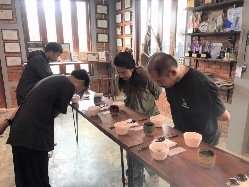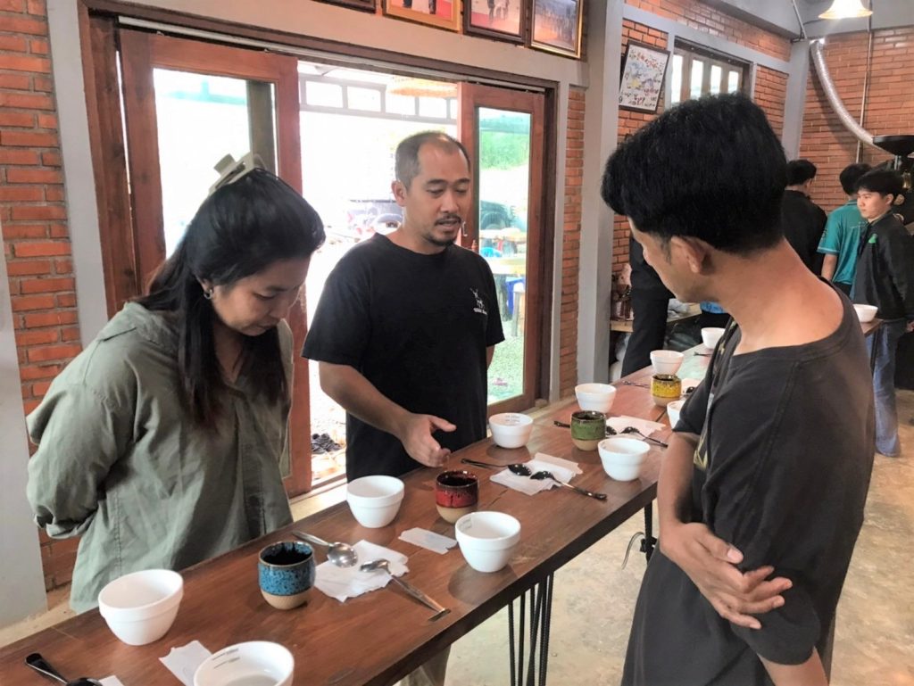 กิจกรรม Cupping เมล็ดกาแฟ พร้อมทั้งแลกเปลี่ยนเรียนรู้กระบวนการ Process ที่มีผลต่อรสชาติกาแฟ การปรับปรุงกระบวนการผลิตเพื่อให้ได้รสชาติกาแฟที่ดี