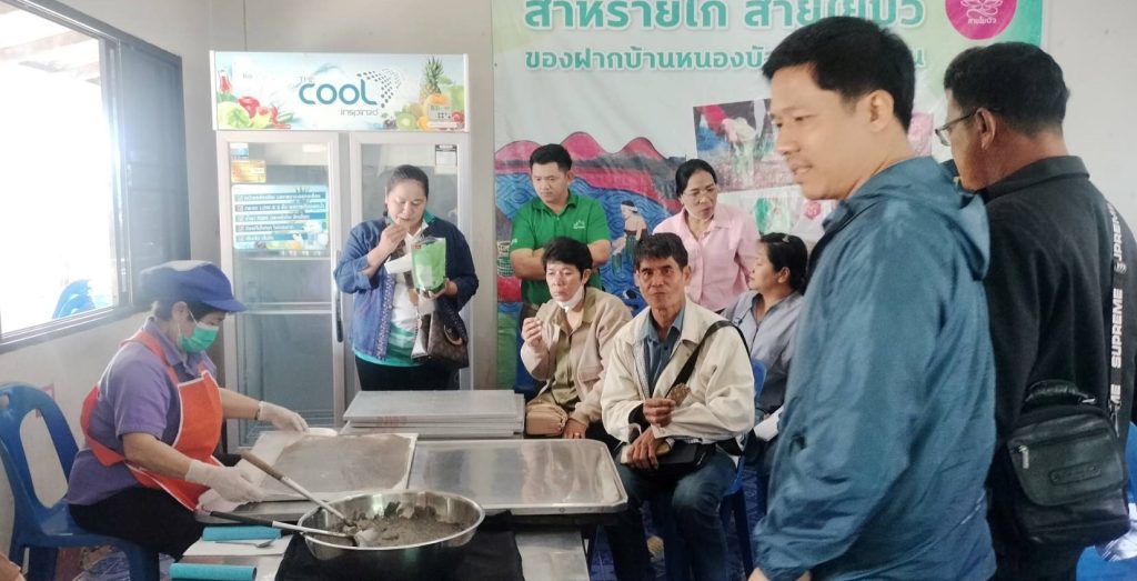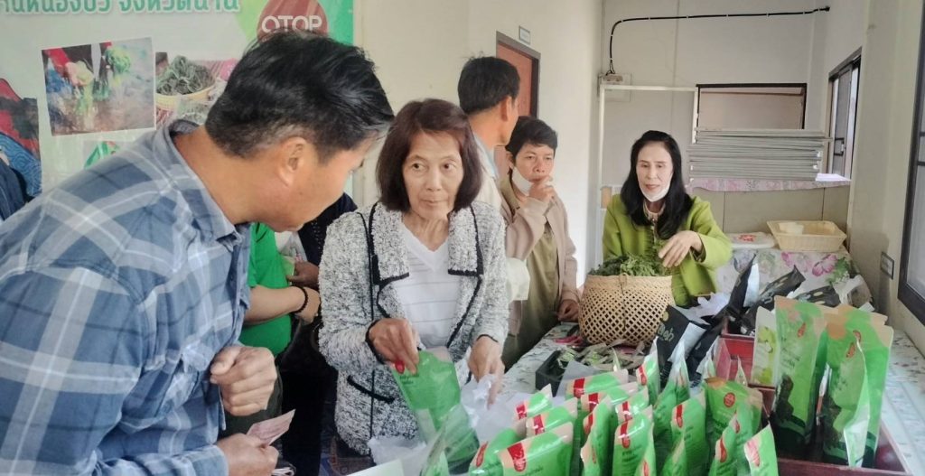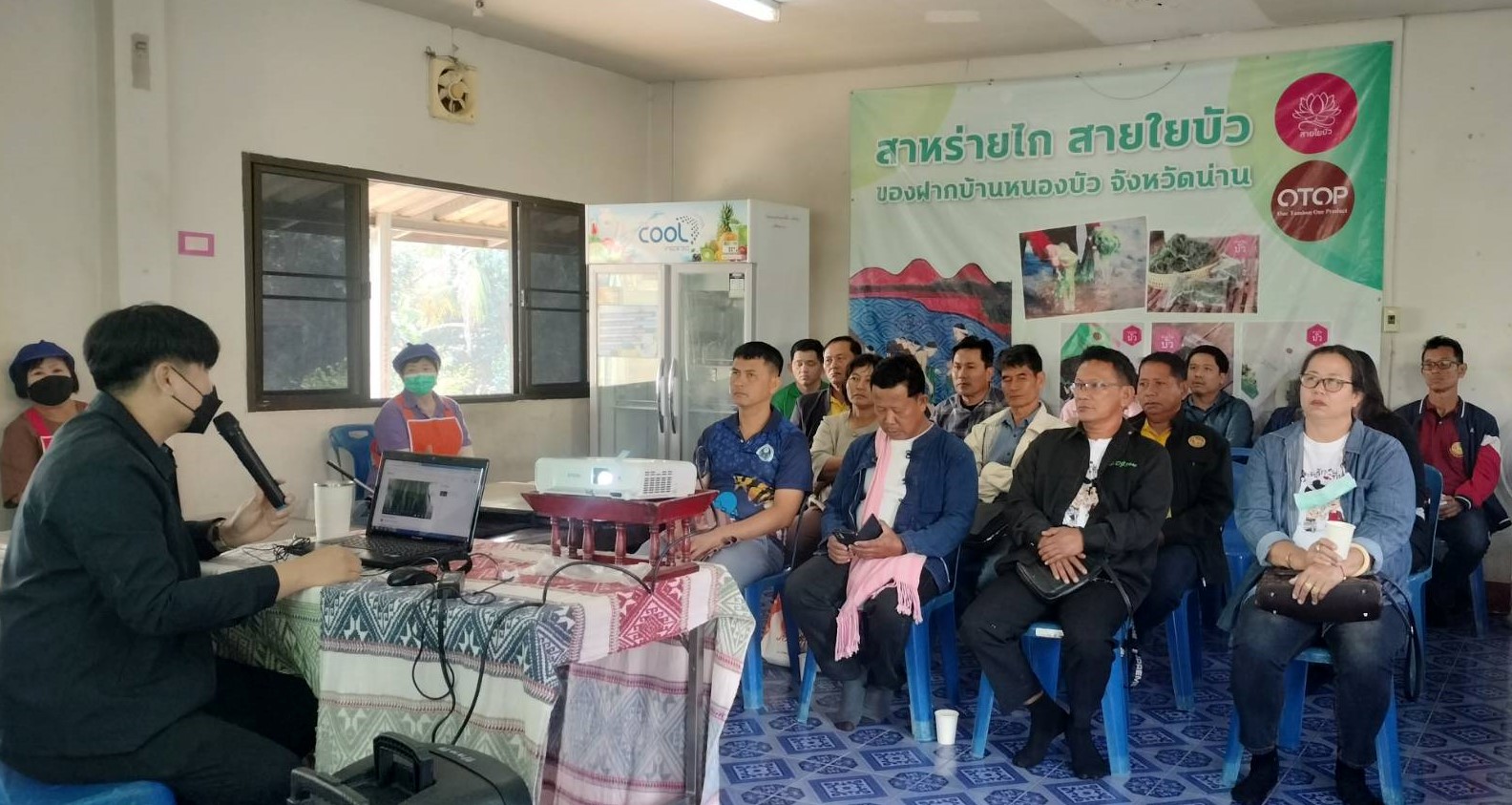 นายสันติ มณีอ่อน เกษตรอำเภอท่าวังผา มอบหมายให้นางเฉลิมพร ลำน้อย นักวิชาการส่งเสริมการเกษตรชำนาญการพิเศษ พร้อมด้วยคณะกรรมการกลุ่มวิสาหกิจชุมชนแปรรูปสาหร่ายน้ำจืดบ้านหนองบัว ร่วมต้อนรับคณะศึกษาดูงานกลุ่มเจ้าหน้าที่และเกษตรกรผู้นำ จากสำนักงานเกษตรอำเภอชุมแสง จังหวัดนครสวรรค์ จำนวน 18 คน โดยมีวัตถุประสงค์เพื่อพัฒนาศักยภาพเจ้าหน้าที่และเกษตรกรผู้นำที่สนใจได้เรียนรู้ด้านการผลิต การแปรรูปสาหร่ายน้ำจืด และสามารถนำองค์ความรู้มาประยุกต์ใช้ในพื้นที่ของตนเองเพื่อสร้างรายได้อย่างเหมาะสม ณ ที่ทำการกลุ่มวิสาหกิจชุมชนแปรรูปสาหร่ายน้ำจืดบ้านหนองบัว หมู่ที่ 4 ตำบลป่าคา อำเภอท่าวังผา จังหวัดน่าน