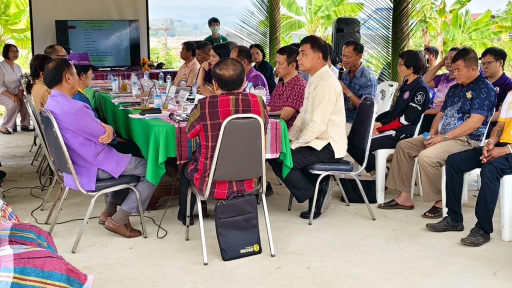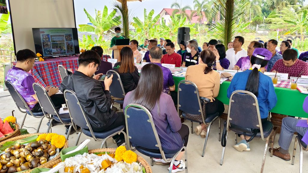 นายสันติ มณีอ่อน เกษตรอำเภอท่าวังผา พร้อมด้วยเจ้าหน้าที่สำนักงานเกษตรอำเภอท่าวังผา ร่วมต้อนรับคณะกรรมการตรวจประเมินผลงานศูนย์เรียนรู้โครงการอันเนื่องมาจากพระราชดำริต้นแบบ ตามโครงการ 1 จังหวัด 1 ศูนย์เรียนรู้โครงการอันเนื่องมาจากพระราชดำริต้นแบบ ประจำปี พ.ศ. 2568 ณ ศูนย์เรียนรู้โครงการพัฒนาพื้นที่ต้นแบบการพัฒนาคุณภาพชีวิต ตามหลักทฤษฎีใหม่ ประยุกต์สู่ “โคก หนอง นา โมเดล” ของนางวิไลวรรณ พันธ์แก้ว บ้านตาลชุม หมู่ที่ 3 ตำบลตาลชุม อำเภอท่าวังผา จังหวัดน่าน