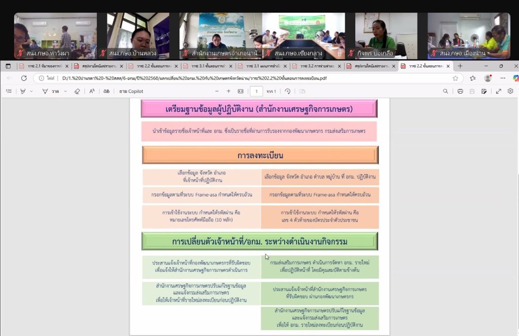 นายสันติ มณีอ่อน เกษตรอำเภอท่าวังผา มอบหมายให้เจ้าหน้าที่สำนักงานเกษตรอำเภอท่าวังผา ร่วมกับ คณะกรรมการอาสาสมัครเกษตรอำเภอ (อกษอ.) อำเภอท่าวังผา ประชุมการจัดทำข้อมูลกรอบตัวอย่างสำหรับการสำรวจแก่อาสาสมัครเกษตรหมู่บ้าน จังหวัดน่าน ภายใต้โครงการเพิ่มประสิทธิภาพการจัดทำสารสนเทศการเกษตรและการบริหารจัดการข้อมูลขนาดใหญ่ ประจำปีงบประมาณ พ.ศ. 2568 จากสำนักงานเศรษฐกิจการเกษตร เพื่อชี้แจงแนวทางการปฏิบัติงานในพื้นที่ และซักถามประเด็นปัญหาต่างๆ ในการดำเนินงานโครงการฯ รวมถึงให้ อกม. ได้ร่วมแลกเปลี่ยนประเด็นการดำเนินงานในพื้นที่ โดยมี นายศักดิ์สิทธิ์ ศรีวิชัย เกษตรจังหวัดน่าน เป็นประธานในการประชุม ผ่านระบบการประชุมทางไกล Zoom Meeting ณ สำนักงานเกษตรอำเภอท่าวังผา จังหวัดน่าน