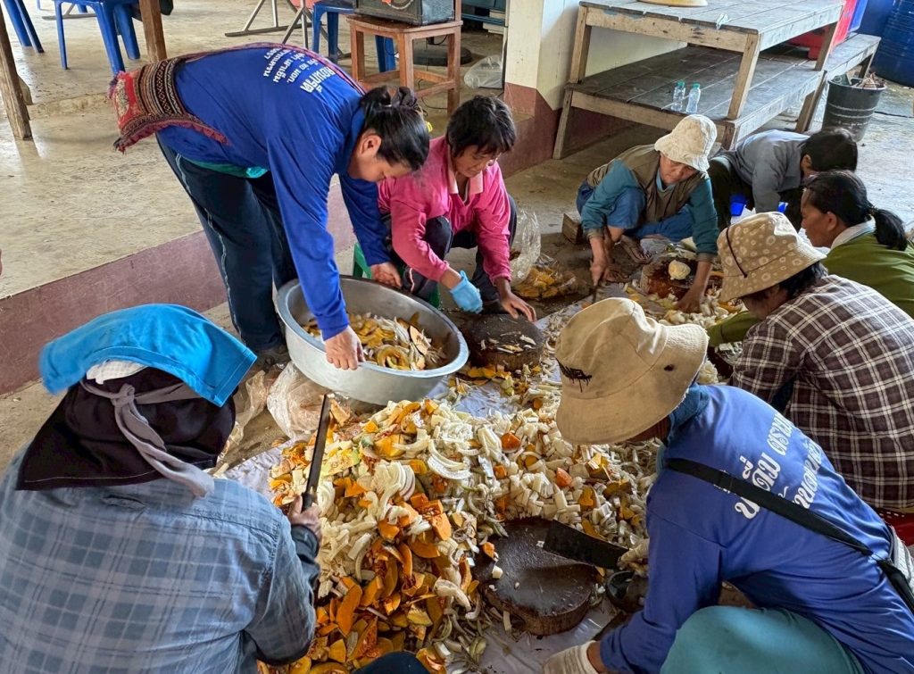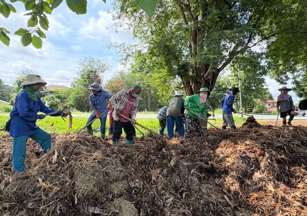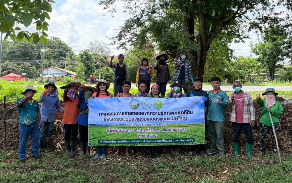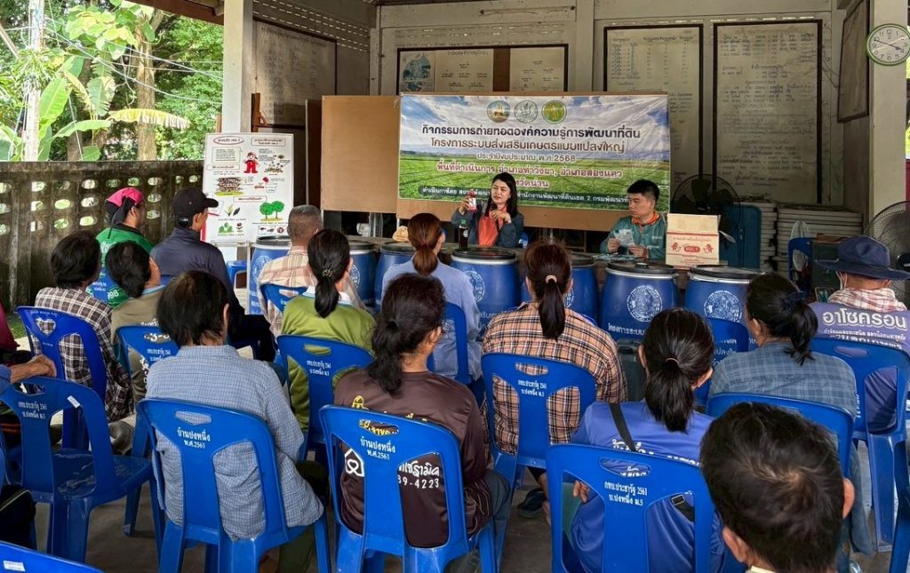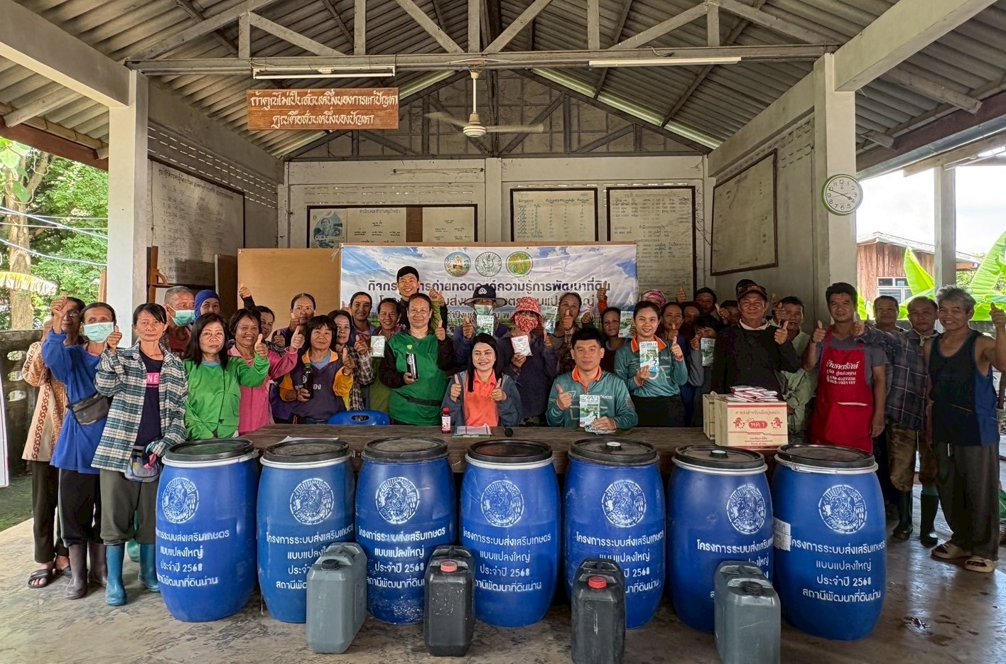 นายสันติ มณีอ่อน เกษตรอำเภอท่าวังผา มอบหมายให้เจ้าหน้าที่สำนักงานเกษตรอำเภอท่าวังผา บูรณาการร่วมกับเจ้าหน้าที่จากสถานีพัฒนาที่ดินน่าน กรมพัฒนาที่ดิน ถ่ายทอดองค์ความรู้การพัฒนาที่ดินให้แก่เกษตรกรสมาชิกกลุ่มแปลงใหญ่พริกบ้านปง 1 พร้อมทั้งร่วมทำน้ำหมักชีวภาพจากเศษผัก ผลไม้ และปุ๋ยหมักจากเศษวัสดุเหลือใช้ทางการเกษตร เพื่อส่งเสริมการจัดการเศษวัสดุเหลือใช้ทางการเกษตรโดยไม่เผาทำลาย ส่งเสริมการจัดการดินและปุ๋ยชุมชน ภายใต้โครงการระบบส่งเสริมเกษตรแบบแปลงใหญ่ กรมพัฒนาที่ดิน ประจำปีงบประมาณ พ.ศ. 2568 ณ ที่ทำการกลุ่มแปลงใหญ่พริกบ้านปง 1 หมู่ที่ 5 ตำบลตาลชุม อำเภอท่าวังผา จังหวัดน่าน