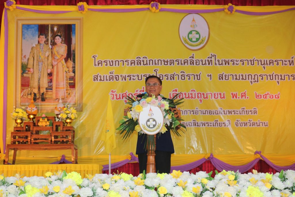นายสันติ มณีอ่อน เกษตรอำเภอท่าวังผา มอบหมายให้ นางเฉลิมพร ลำน้อย นักวิชาการส่งเสริมการเกษตรชำนาญการพิเศษ พร้อมด้วยเจ้าหน้าที่สำนักงานเกษตรอำเภอท่าวังผา ร่วมงานโครงการคลินิกเกษตรเคลื่อนที่ในพระราชานุเคราะห์ สมเด็จพระบรมโอรสาธิราชฯ สยามมกุฎราชกุมาร ครั้งที่ 3/2568 มีวัตถุประสงค์เพื่อให้บริการและแก้ไขปัญหาด้านการเกษตรแก่เกษตรกรในพื้นที่ห่างไกล โดยมี นายประจักร์ ไชยกิจ ปลัดจังหวัดน่าน เป็นประธานในพิธีเปิดงาน ณ หอประชุมที่ว่าการอำเภอเฉลิมพระเกียรติ จังหวัดน่าน
