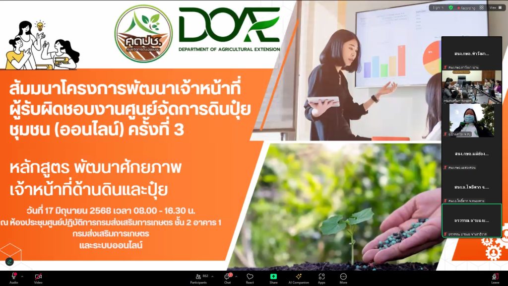 ร่วมสัมมนาโครงการพัฒนาเจ้าหน้าที่ผู้รับผิดชอบงานศูนย์จัดการดินปุ๋ยชุมชน (ออนไลน์) ครั้งที่ 3
