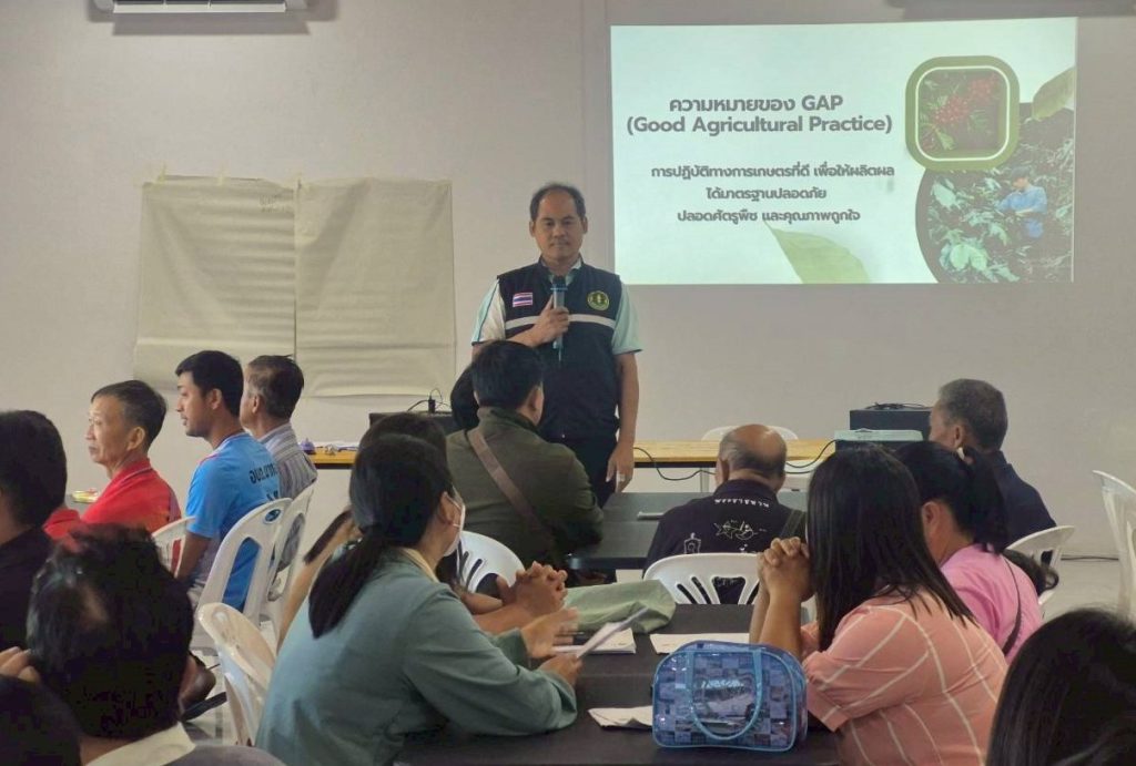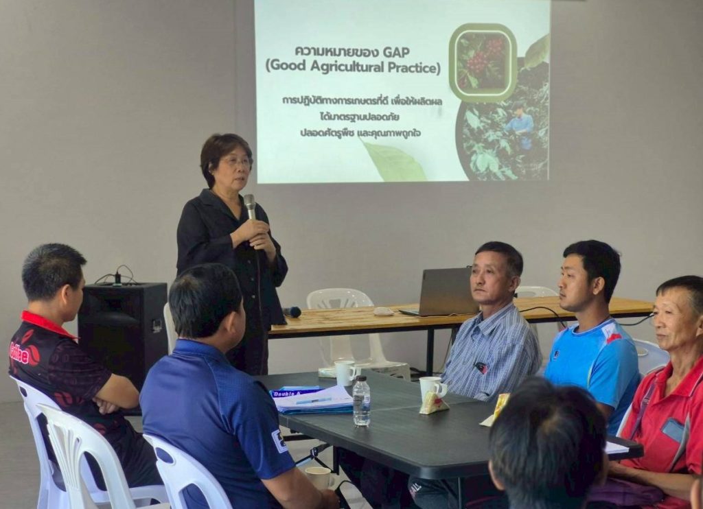 นายสันติ มณีอ่อน เกษตรอำเภอท่าวังผา พร้อมด้วยเจ้าหน้าที่สำนักงานเกษตรอำเภอท่าวังผา ร่วมเป็นวิทยากรถ่ายทอดความรู้และเตรียมความพร้อมให้แก่เกษตรกร เพื่อขอรับรองการปฏิบัติทางการเกษตรที่ดี (GAP) ภายใต้โครงการ “การพัฒนากระบวนการจัดการทางสังคมแบบมีส่วนร่วมของชุมชมชนบนพื้นที่สูงเพื่อเชื่อมโยงห่วงโซ่คุณค่ากาแฟสำหรับการพัฒนาการท่องเที่ยวเชิงเกษตรในชุมชน“ ซึ่งจัดโดย วิทยาลัยนานาชาติ มหาวิทยาลัยแม่โจ้ และมีเกษตรกรผู้ปลูกกาแฟเข้าร่วมโครงการฯ จากอำเภอท่าวังผา และอำเภอสองแคว จำนวน 101 ราย ณ โรงสีกาแฟหลี่พานิชคอฟฟี่ฟาร์ม อำเภอท่าวังผา จังหวัดน่าน