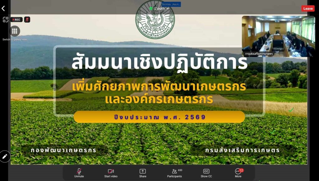 นายสันติ มณีอ่อน เกษตรอำเภอท่าวังผา มอบหมายให้ นางเบญจวรรณ สุขชุม นักวิชาการส่งเสริมการเกษตรปฏิบัติการ ร่วมสัมมนาเชิงปฏิบัติการเพิ่มศักยภาพการพัฒนาเกษตรกรและองค์กรเกษตรกร เพื่อสร้างความเข้าใจแก่เจ้าหน้าที่ในการดำเนินงานพัฒนาเกษตรกรและองค์กรเกษตรกรของกรมส่งเสริมการเกษตร ประจำปีงบประมาณ พ.ศ. 2569 ตลอดจนการนำนโยบายไปประยุกต์ใช้ในการปฏิบัติงานในพื้นที่ได้อย่างเหมาะสม และเป็นเวทีเพื่อแลกเปลี่ยน เรียนรู้ เชื่อมโยงเครือข่ายเจ้าหน้าที่ ผ่านระบบประชุมออนไลน์ Zoom Meeting ณ สำนักงานเกษตรอำเภอท่าวังผา จังหวัดน่าน