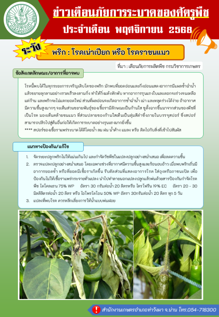 พริก : โรคเน่าเปียก หรือ โรคราขนแมว