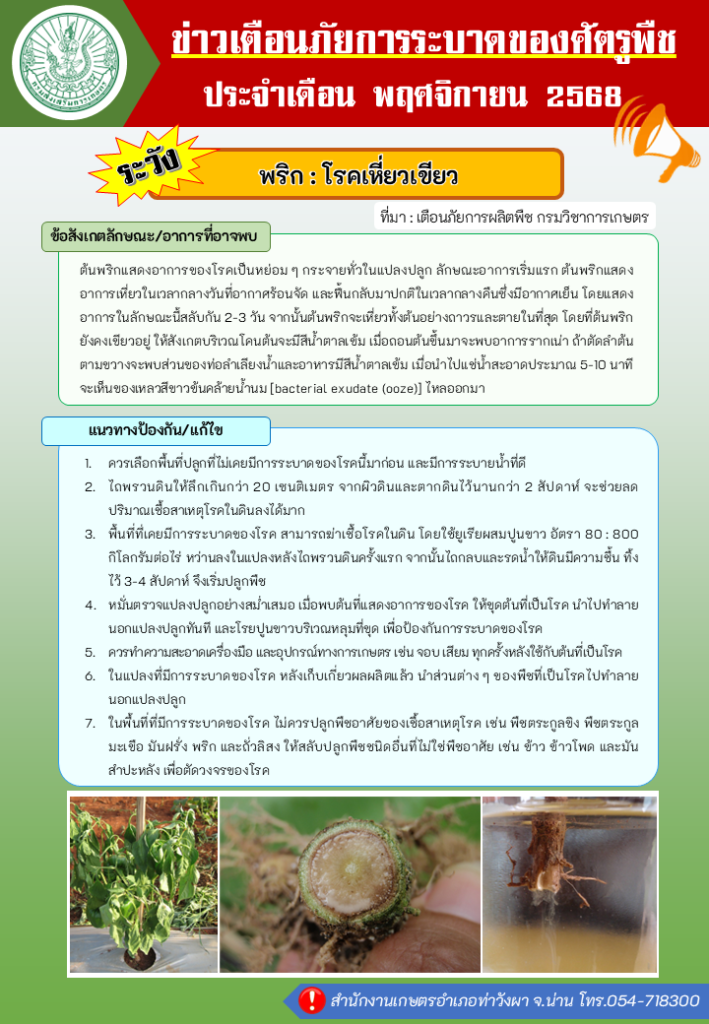 พริก : โรคเน่าเปียก หรือ โรคราขนแมว