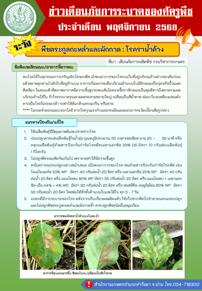พืชตระกูลกะหล่ำและผักกาด : โรคราน้ำค้าง