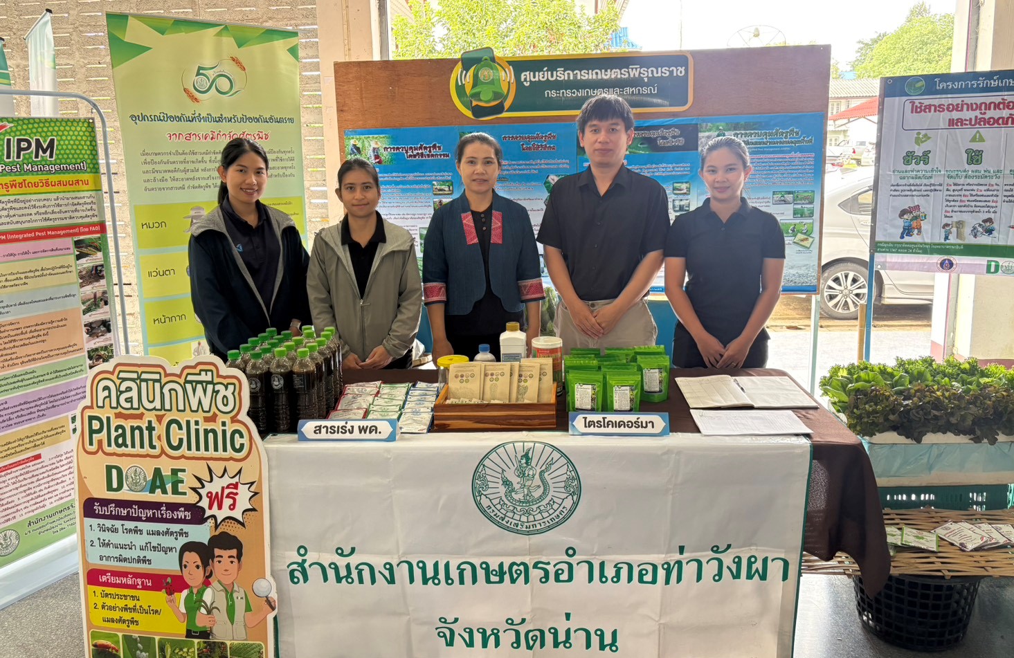 นายสันติ มณีอ่อน เกษตรอำเภอท่าวังผา มอบหมายให้ นางเฉลิมพร ลำน้อย นักวิชาการส่งเสริมการเกษตรชำนาญการพิเศษ พร้อมด้วยเจ้าหน้าที่สำนักงานเกษตรอำเภอท่าวังผา ร่วมจัดนิทรรศการในเวทีแลกเปลี่ยนเรียนรู้และคืนข้อมูลการศึกษาเพื่อสุขภาพปลอดภัย ลดการใช้สารเคมี โดยมี นายฐสิฐญ์ บำเพ็ญ ปลัดอำเภอหัวหน้ากลุ่มงานบริหารงานปกครอง รักษาราชการแทนนายอำเภอท่าวังผา เป็นประธานในพิธีเปิด ซึ่งจัดโดยสำนักงานสาธารณสุขอำเภอท่าวังผาร่วมกับมหาวิทยาลัยเกษตรศาสตร์ ในการนี้ สำนักงานเกษตรอำเภอท่าวังผา ได้ร่วมจัดนิทรรศการให้ความรู้การผลิตพืชผักให้ปลอดภัย และการจัดการศัตรูพืชแบบผสมผสาน พร้อมทั้งสนับสนุนสารชีวภัณฑ์เชื้อราไตรโคเดอร์มา สารเร่ง พด. น้ำหมักชีวภาพ และเมล็ดพันธุ์ผักสวนครัวให้แก่เกษตรกรที่เข้าร่วมกิจกรรม ณ หอประชุมอำเภอท่าวังผา จังหวัดน่าน