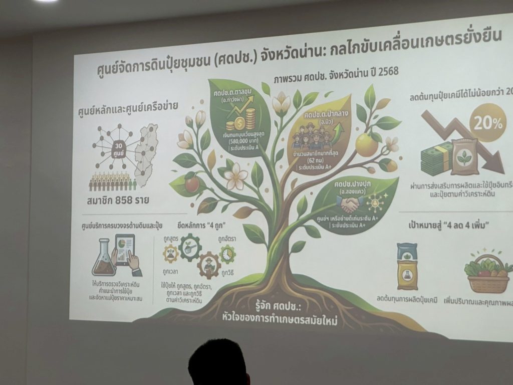 นายสันติ มณีอ่อน เกษตรอำเภอท่าวังผา มอบหมายให้ นายชวลิต ตนะทิพย์ นักวิชาการส่งเสริมการเกษตรชำนาญการ พร้อมด้วยเกษตรกรสมาชิก ศดปช. ร่วมเวทีแลกเปลี่ยนเรียนรู้และประเมินศักยภาพของ ศดปช. ตามโครงการส่งเสริมการจัดการสุขภาพพืชเพื่อเพิ่มประสิทธิภาพการผลิตสินค้าเกษตร ประจำปีงบประมาณ พ.ศ. 2569 โดยมี นายศักดิ์สิทธิ์ ศรีวิชัย เกษตรจังหวัดน่าน เป็นประธาน ณ ห้องประชุมเทพชัยมงคล สำนักงานเกษตรจังหวัดน่าน ตำบลในเวียง อำเภอเมืองน่าน จังหวัดน่าน