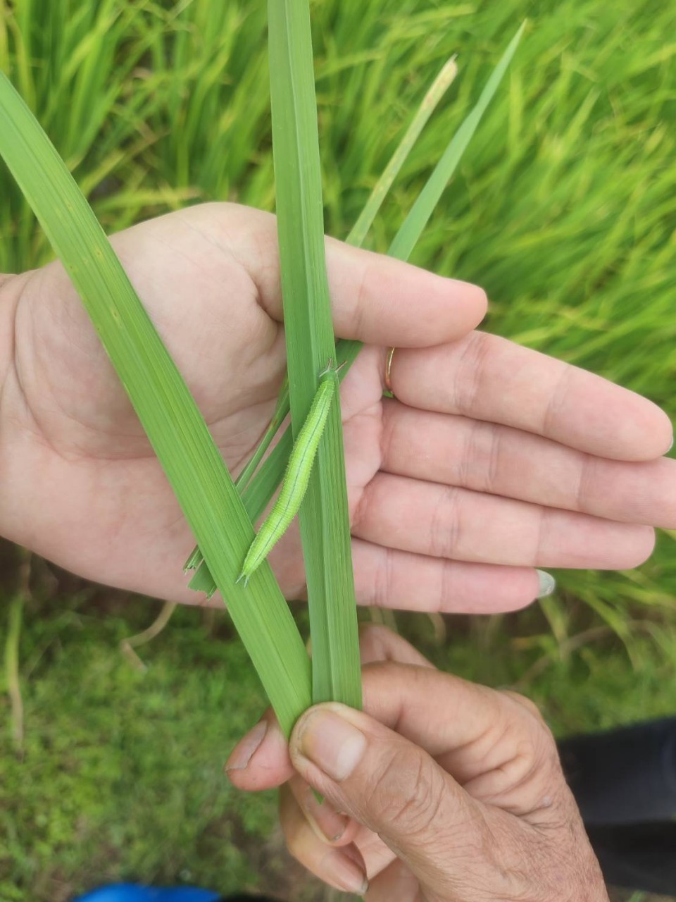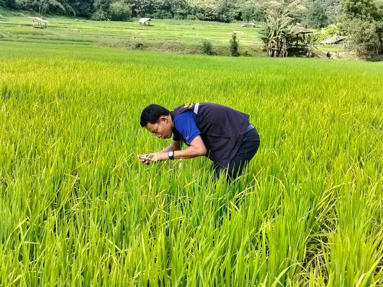 วันที่ ๖ กันยายน ๒๕๖๖ เวลา ๑๕.๓๐ น. นายธนัย บุญมาธิวัฒน์ พร้อมด้วย นักวิชาการส่งเสริมการเกษตร ลงพื้นที่แปลงนาของเกษตรกรบ้านปอน หมู่ที่ ๖ ตำบลปอน อำเภอทุ่งช้าง จังหวัดน่าน เนื่องจากได้รับแจ้งจากเกษตรกรว่าต้นข้าวในแปลงนามีอาการผิดปกติ จากการสำรวจพบว่า ต้นข้าวมีอาการของโรคไหม้และใบจุดสีน้ำตาล รวมทั้งพบแมลงศัตรูพืช เช่น เพลี้ยกระโดดหลังขาว เพลี้ยจักจั่นสีเขียว หนอนห่อใบข้าว หนอนผีเสื้อ เป็นต้น เข้าทำลายต้นข้าว จึงแนะนำให้เกษตรกรใช้สารกำจัดเชื้อรา เช่น คาร์เบนดาซิม หรือ ซูกาไมซิน ส่วนแมลงศัตรูพืชใช้สารเคมีกำจัดแมลง เช่น คาร์โบซัลแฟน หรือ ฟีโปรนิล ในอัตราตามฉลากข้างบรรจุภัณฑ์ หลังจากอาการของต้นข้าวดีขึ้น ให้บำรุงด้วยปุ๋ยสูตร ๑๖-๒๐-๐ อัตรา ๒๐-๒๕ กิโลกรัมต่อไร่
