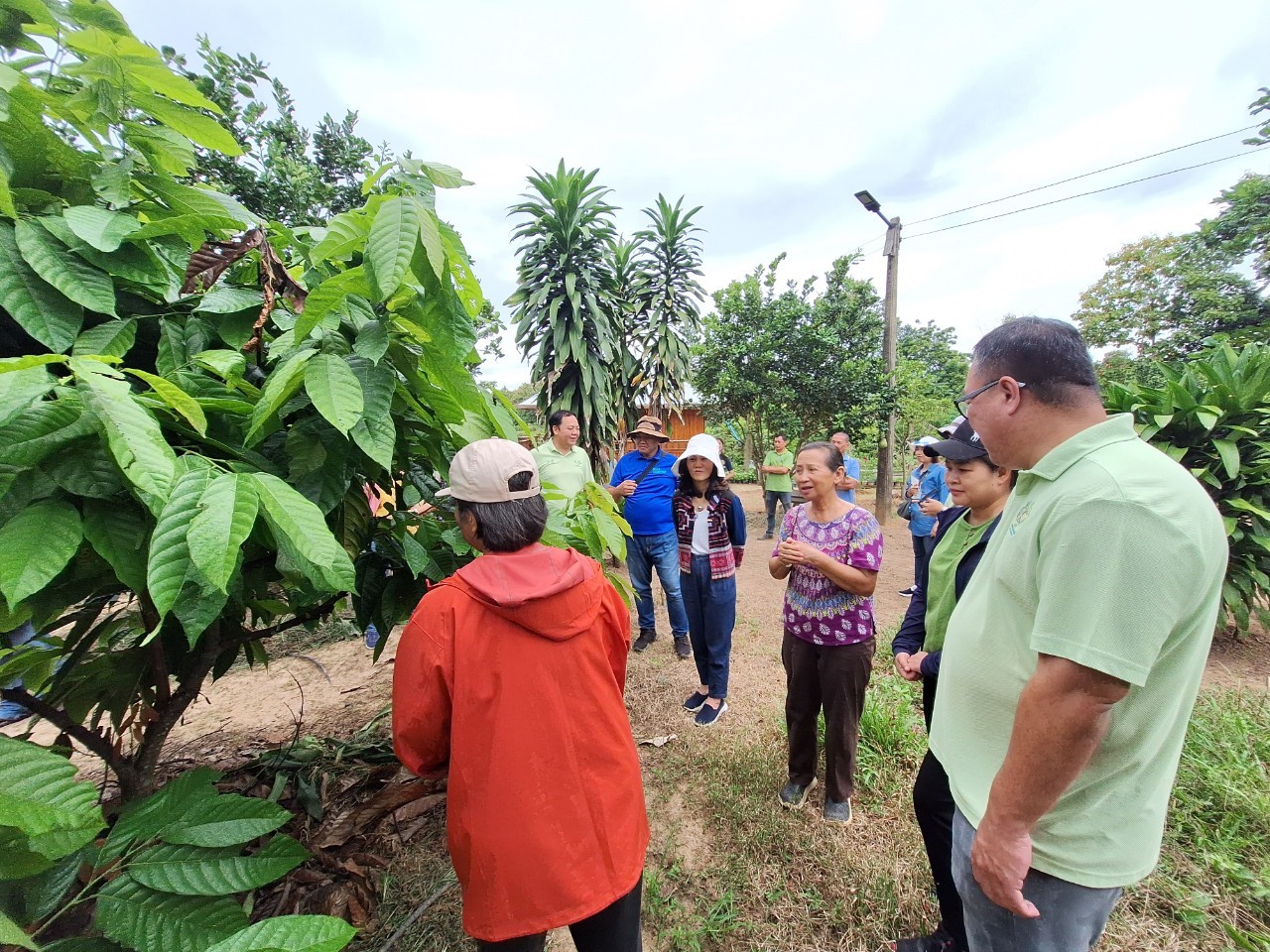 สำนักงานเกษตรอำเภอทุ่งช้าง ร่วมตอนรับและนำนักวิชาการและเจ้าหน้าที่จากกองวิจัยพัฒนาปัจจัยการผลิตทางการเกษตร สถาบันวิจัยพืชสวน และ ศูนย์วิจัยและพัฒนาการเกษตรน่าน กรมวิชาการเกษตร ลงพื้นที่สวนโกโก้อำเภอทุ่งช้าง