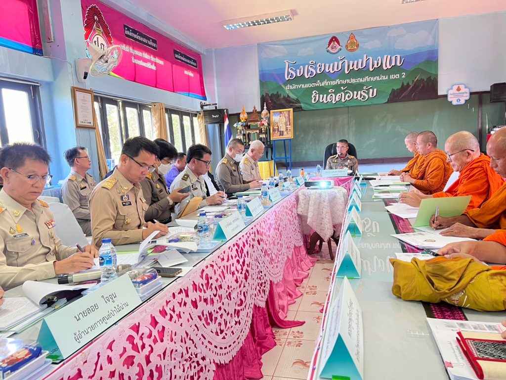 พลเอก เฉลิมชัย สิทธิสารท องคมนตรี เป็นประธานการประชุมหารือ ร่วมกับ นายชัยนรงค์ วงศ์ใหญ่ ผู้ว่าราชการจังหวัดน่าน นายกฤชเพชร เพชระบูรณิน รองผู้ว่าราชการจังหวัดน่าน และหน่วยงานที่เกี่ยวข้อง รวมทั้งลงพื้นที่สำรวจบริเวณอาศรมบ้านปางแก เพื่อเก็บข้อมูลเบื้องต้นในการดำเนินโครงการ “สร้างศาลาปฏิบัติธรรม” ณ ห้องประชุมโรงเรียนบ้านปางแก หมู่ที่ 7 ตำบลทุ่งช้าง อำเภอทุ่งช้าง จังหวัดน่าน ในการนี้ นายธนัย บุญมาธิวัฒน์ เกษตรอำเภอทุ่งช้าง พร้อมด้วย นางสาวเขมิสรา แจ้งกระจ่าง นักวิชาการส่งเสริมการเกษตรปฏิบัติการ ร่วมต้อนรับองคมนตรี