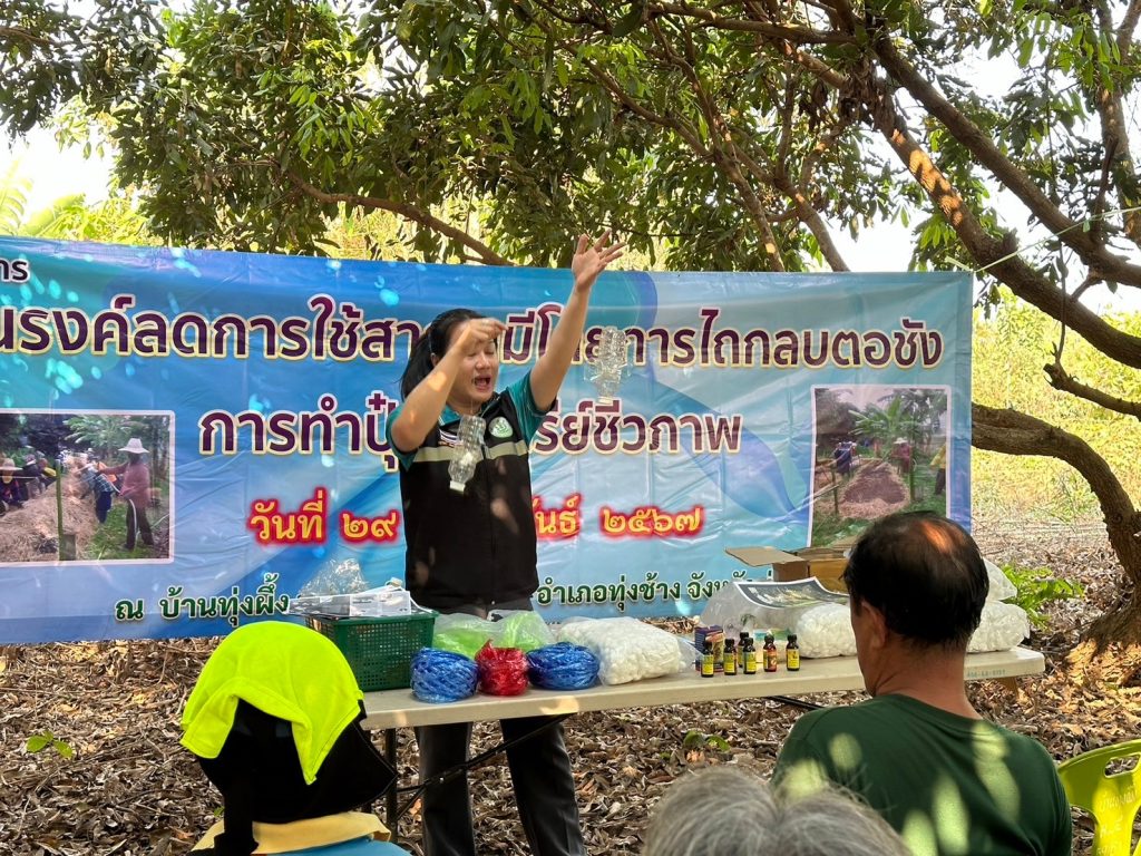 สำนักงานเกษตรอำเภอทุ่งช้าง ร่วมถ่ายทอดองค์ความรู้ เรื่อง การเพิ่มประสิทธิภาพการผลิตพืชผลทางการเกษตร และสาธิตการผลิตปุ๋ยหมัก และ การป้องกันกำจัดแมลงวันทอง