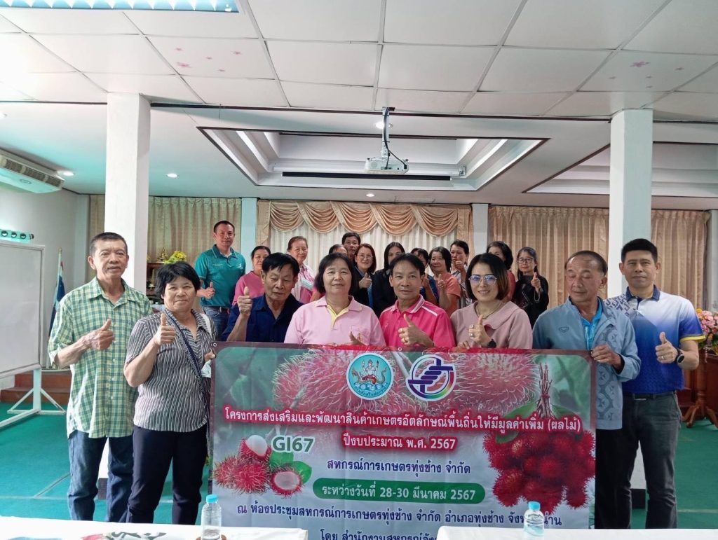 นายธนัย บุญมาธิวัฒน์ เกษตรอำเภอทุ่งช้าง เป็นวิทยากรอบรมโครงการส่งเสริมและพัฒนาสินค้าเกษตรอัตลักษณ์พื้นถิ่นให้มีมูลค่าเพิ่ม (ผลไม้) ปีงบประมาณ 2567 ของสำนักงานสหกรณ์จังหวัดน่าน ณ ห้องประชุมสหกรณ์การเกษตรทุ่งช้าง จำกัด อำเภอทุ่งช้าง จังหวัดน่าน โดยได้ถ่ายทอดองค์ความรู้ “การจัดการและวางแผนผลผลิตเงาะคุณภาพในแปลงผลิต” ให้แก่สมาชิกสหกรณ์ที่ผลิตเงาะ และเจ้าหน้าที่สำนักงานสหกรณ์จังหวัดน่าน เพื่อนำไปพัฒนาการผลิตเงาะของตนเองให้มีคุณภาพ และมีแผนการผลิตที่ดีสำหรับบริหารจัดการในแปลงเพาะปลูกได้อย่างมีประสิทธิภาพ