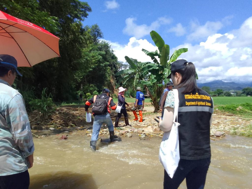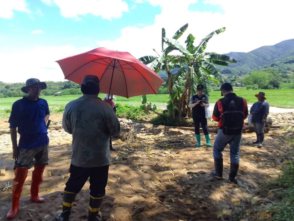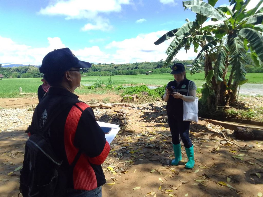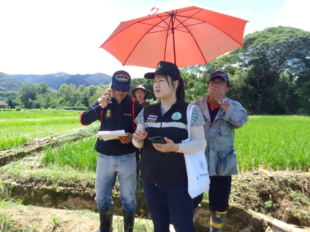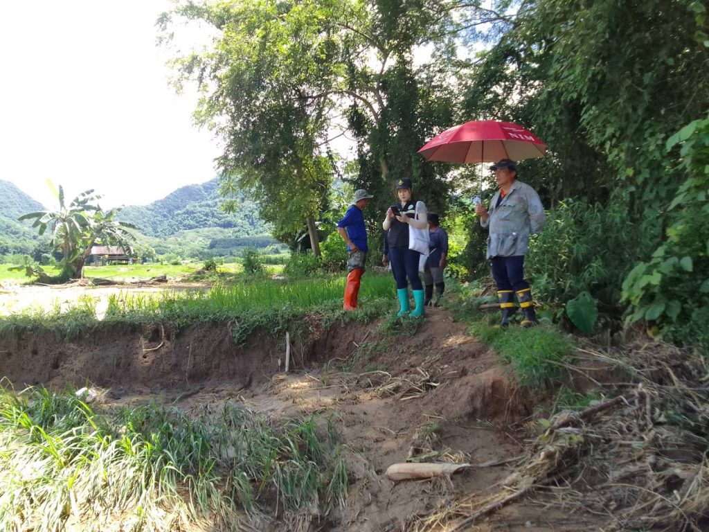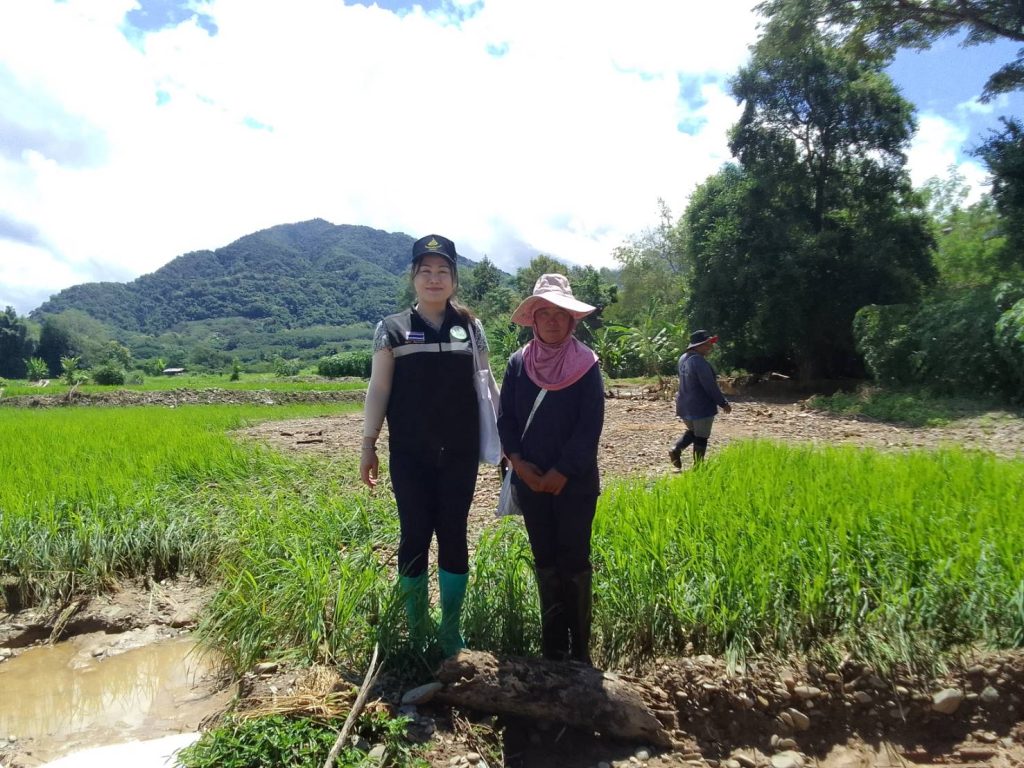 นายชญาภา พัฒนะพรหม นักวิชาการส่งเสริมการเกษตรชำนาญการ รักษาราชการแทน เกษตรอำเภอทุ่งช้าง ลงพื้นที่ร่วมกับเทศบาลตำบลทุ่งช้าง และผู้นำชุมชนของแต่ละหมู่บ้าน เพื่อตรวจสอบพื้นที่ทำกินของเกษตรกรที่เกิดความเสียหายด้านพืชจากเหตุอุทกภัยและน้ำป่าไหลหลาก เกิดขึ้นเมื่อวันที่ 16 และ 21 สิงหาคม 2567 ที่ผ่านมา ณ บ้านแพะกลาง หมู่ 6 ตำบลทุ่งช้าง บ้านดอนชัย หมู่ 3 บ้านเฟื่อยลุง หมู่ 9 และบ้านป่าเต้า หมู่ 11 ตำบลและ อำเภอทุ่งช้าง จังหวัดน่าน ซึ่งพื้นที่เสียหายเป็นนาข้าวของเกษตรกร จำนวน 37 ครัวเรือน ในการนี้ สำนักงานเกษตรอำเภอทุ่งช้างและเทศบาลตำบลทุ่งช้าง ได้เก็บรวบรวมข้อมูลความเสียหายเพื่อนำไปประกอบการพิจารณาขอรับการช่วยเหลือต่อไป
