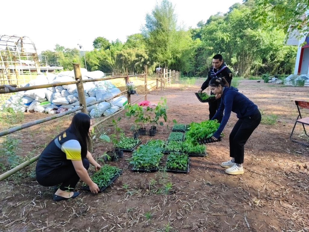 นายชญาภา พัฒนะพรหม นักวิชาการส่งเสริมการเกษตรชำนาญการ รักษาราชการแทน เกษตรอำเภอทุ่งช้าง พร้อมด้วย นักวิชาการส่งเสริมการเกษตร ร่วมกิจกรรมปลูกพืชผักสวนครัว ตามโครงการ “บ้านนี้มีรัก ปลูกผักกินเอง” ตามแนวพระราชดำริของสมเด็จพระกนิษฐาธิราชเจ้า กรมสมเด็จพระเทพรัตนราชสุดาฯ สยามบรมราชกุมารี ซึ่งได้รับสนับสนุนกล้าและเมล็ดพันธุ์พืชผักจากศูนย์ส่งเสริมและพัฒนาการเกษตรจังหวัดน่าน ภายใต้โครงการผลิตพืชพันธุ์ดีเพื่อช่วยเหลือเกษตรกรผู้ประสบภัยพิบัติ ของกรมส่งเสริมการเกษตร ปุ๋ยขี้วัวจากสถานีพัฒนาที่ดินน่าน และกล้าผักจากกองทุนแม่ของแผ่นดินอำเภอทุ่งช้าง โดย นายพิพัฒน์ เพ็ชร์พิพัฒน์ นายอำเภอทุ่งช้าง เป็นประธาน ณ บริเวณลานศาลเจ้าพ่อม้าขาว บ้านป่าเปือย หมู่ 7 ตำบลปอน อำเภอทุ่งช้าง จังหวัดน่าน พร้อมด้วย หัวหน้าส่วนราชการ ปลัดอำเภอ องค์กรปกครองส่วนท้องถิ่น กองร้อยทหารพรานที่ 3208 สถานีตำรวจภูธรงอบ ชุดปฏิบัติการกิจการพลเรือนที่ 316 กองกำลังผาเมือง เจ้าหน้าที่ อส.อ.ทุ่งช้าง ที่ 6 กำนันทุกตำบล ผู้ใหญ่บ้านทุกหมู่บ้าน ผู้ช่วยผู้ใหญ่บ้าน ฯลฯ และเครือข่ายกองทุนแม่ของแผ่นดินอำเภอทุ่งช้าง เพื่อส่งเสริมความมั่นคงทางอาหาร สร้างแหล่งอาหารให้กับชุมชน และช่วยเหลือเกษตรกรผู้ประสบอุทกภัยบ้านป่าเปือย ซึ่งพืชผักสวนครัวประกอบด้วย 1.พริกขี้หนู 2.พริกหนุ่ม 3.พริกชี้ฟ้า 4.มะเขือเปราะ 5.ถั่วพลู 6.กะหล่ำปลี 7.มะเขือเทศ 8.คะน้า 9.ผักกาดขาว 10.กะหล่ำดอก 11.ถั่วฝักยาว 12.กระเจี๊ยบเขียว 13.ผักกวางตุ้ง 14.มะเขือเจ้าพระยา
