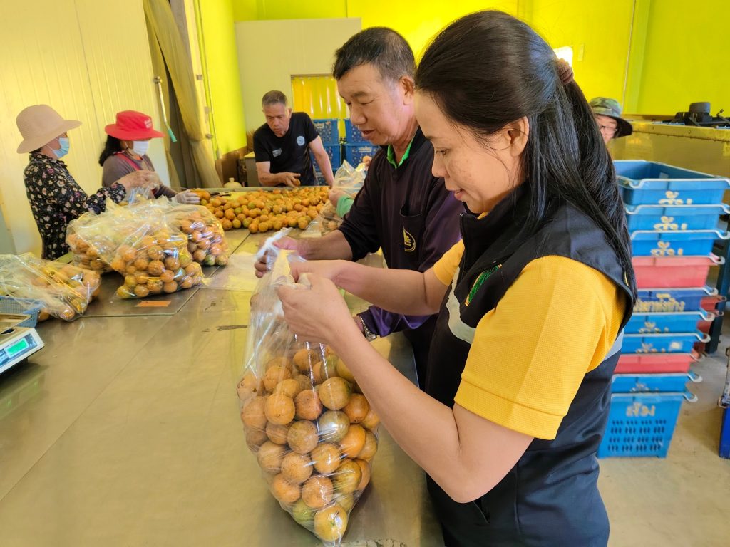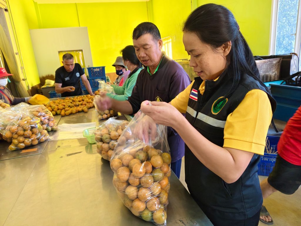 นางภัทรนันท์ พิยะ นักวิชาการส่งเสริมการเกษตรชำนาญการ รักษาราชการแทน เกษตรอำเภอทุ่งช้าง พร้อมด้วย นางสาวปรียานุช โนทนะ และ นายมติชน โลกคำลือ นักวิชาการส่งเสริมการเกษตรปฏิบัติการ ลงพื้นที่เยี่ยมเยียนกลุ่มวิสาหกิจชุมชนไม้ผลเพื่อการตลาดบ้านวังผา ณ หมู่ 7 ตำบลและ อำเภอทุ่งช้าง จังหวัดน่าน ในการคัดและบรรจุส้มสีทองอำเภอทุ่งช้าง ส่งบริษัท เอส แอนด์ พี ซินดิเคท จำกัด (มหาชน) ซึ่งต้องการขนาดผลส้มเบอร์ 2 และ 3 ปริมาณ 1,500 กิโลกรัม เพื่อนำไปผลิตเป็นน้ำส้มสีทองคั้นสด