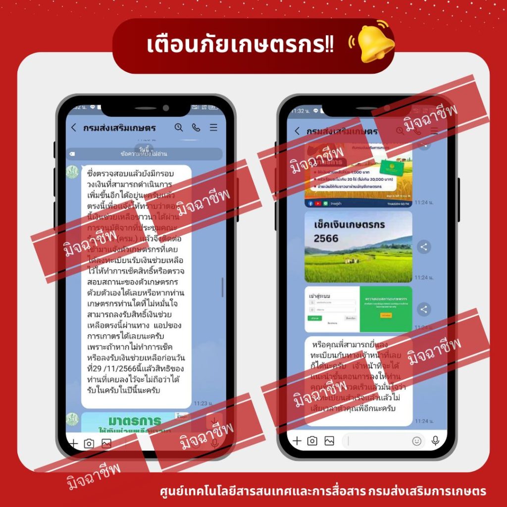 เกษตรกรอย่าหลงเชื่อ “ลงทะเบียนและให้ข้อมูลส่วนบุคคล” แก่กลุ่มมิจฉาชีพโดยเด็ดขาด ![]()