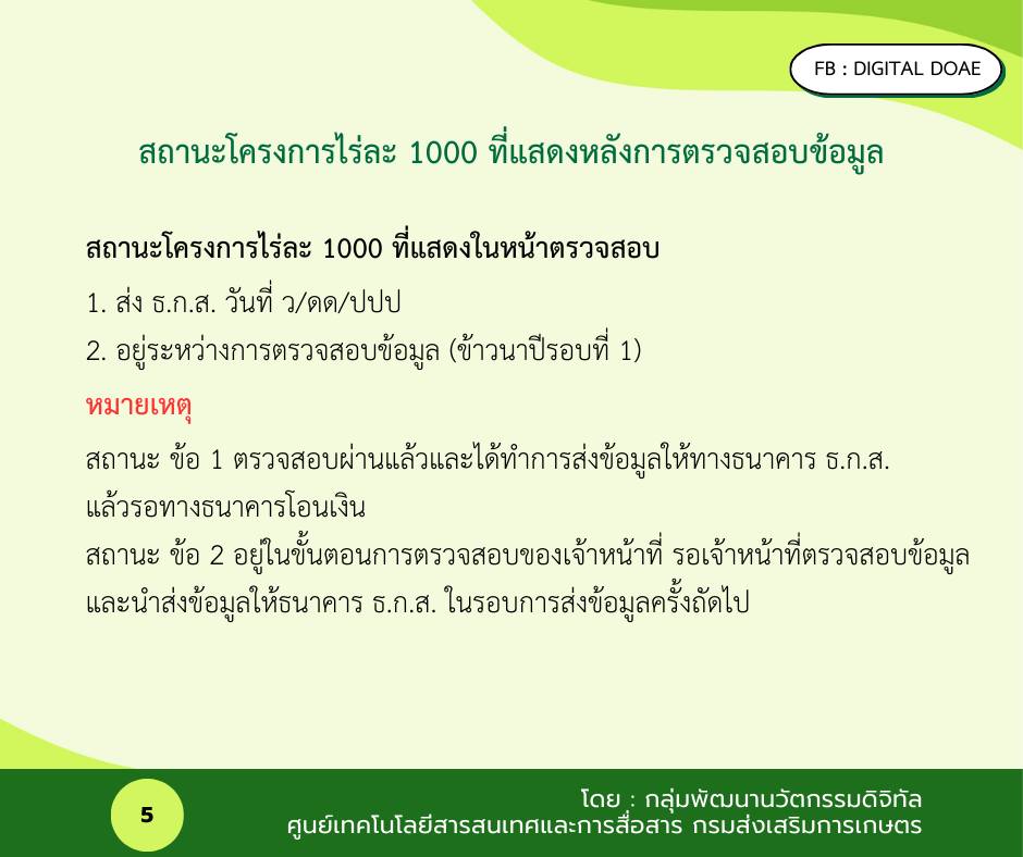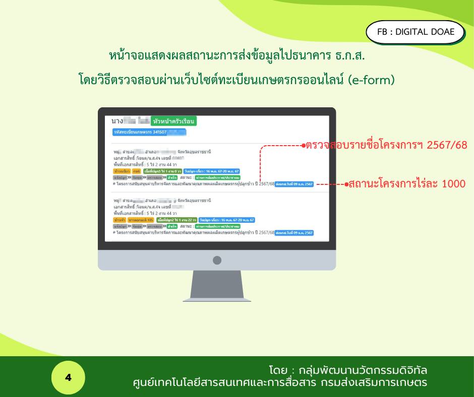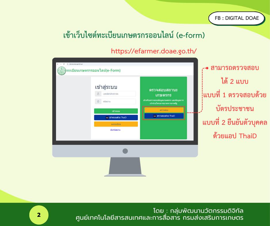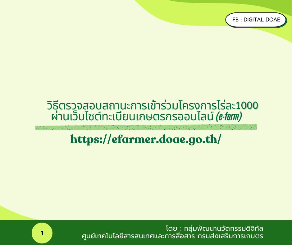 ขั้นตอนการตรวจสอบสิทธิการเข้าร่วมโครงการไร่ละ 1000 ประจำปีการผลิด 2567/2568 ผ่านเว็บไซต์ ทะเบียนเกษตรกรออนไลน์ (e-form) / https://efarmer.doae.go.th/