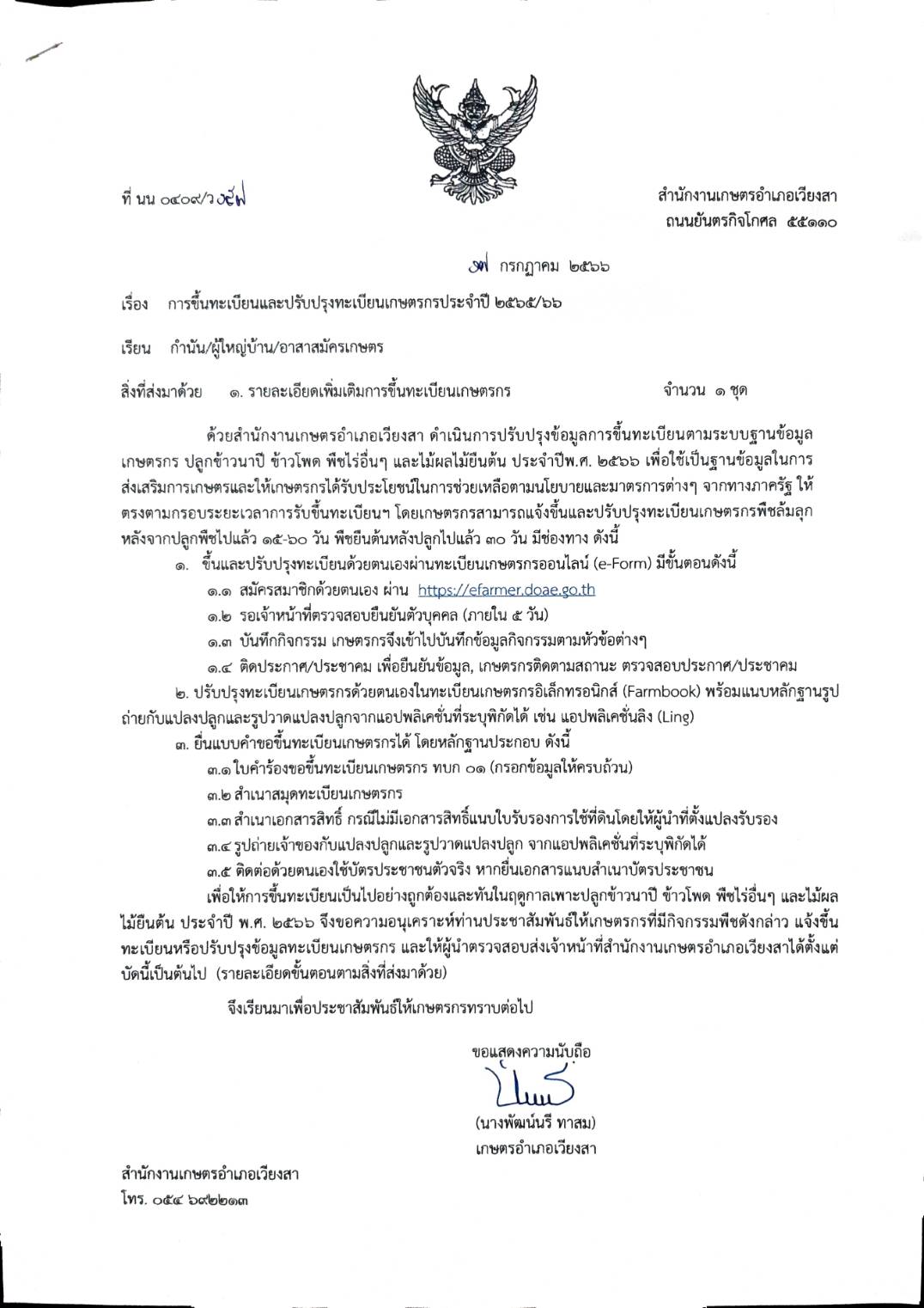 ประชาสัมพันธ์การขึ้นทะเบียนเกษตรกรปีการผลิต 2566/2567 ผ่านระบบ e-Form
